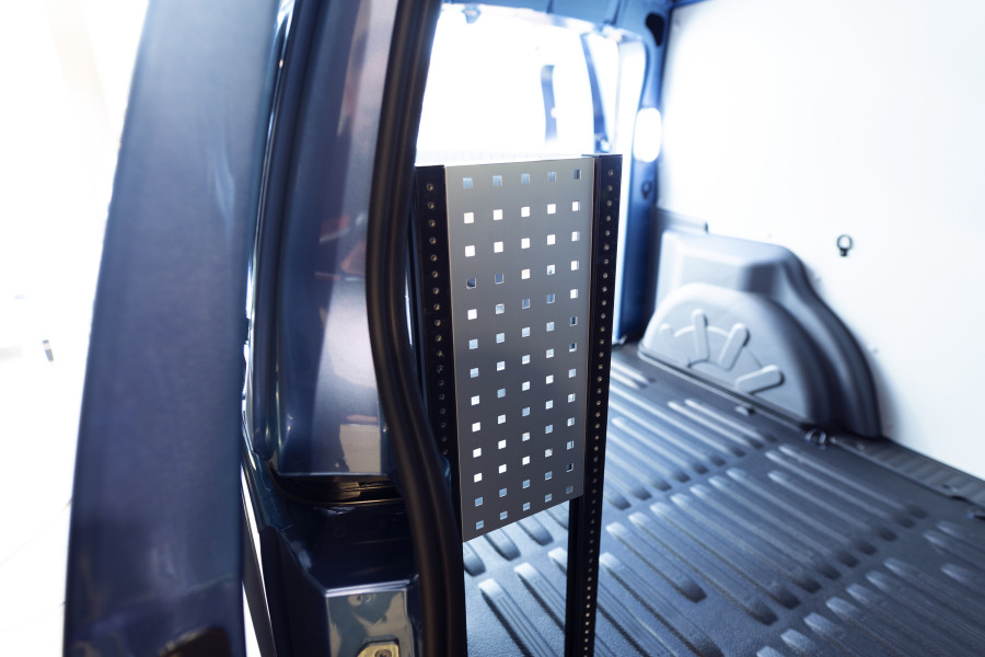 Tous nos systèmes sont équipés de panneaux perforés solides qui optimisent à la fois l'espace de rangement et la fonctionnalité de votre véhicule professionnel. Fabriqués en aluminium de 1 mm avec une anodisation transparente de 15 µm, ils sont conçus pour résister aux environnements difficiles tout en conservant leur aspect élégant au fil du temps. Évitez les objets en vrac sur le plancher, libérez de l'espace et rationalisez votre travail en organisant votre équipement directement sur les panneaux perforés du système d'aménagement.