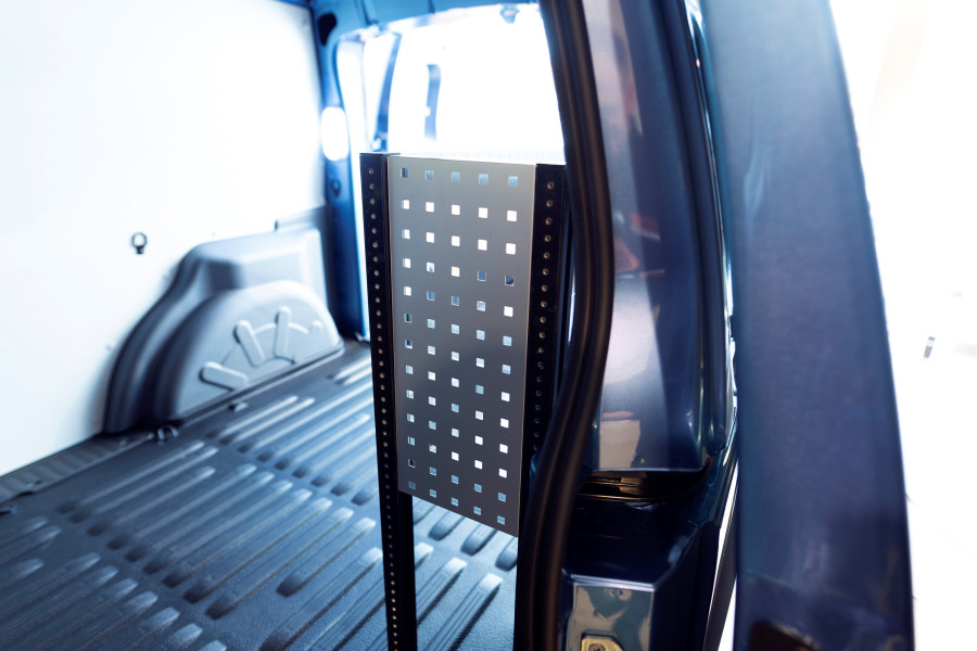 Un aménagement utilitaire un peu plus court avec une profondeur de 262,5 mm pour ceux qui souhaitent conserver la largeur de leur CITROËN BERLINGO, OPEL COMBO, PEUGEOT PARTNER & TOYOTA PROACE CITY L1. L’aménagement offre d’excellentes possibilités de rangement pour les articles de petite taille comme les boîtes de vis et les petits objets pour les professionnels du bâtiment, les électriciens, les plombiers et les chauffagistes. L’aménagement est adapté aux véhicules avec ou sans porte latérale et peut être complété par nos bacs modulaires. Une autre solution populaire consiste à compléter les panneaux perforés avec nos accessoires Smartbox ou crochets pour optimiser l’espace de rangement.