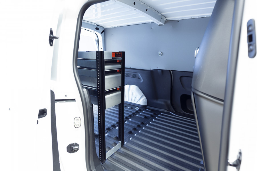 Voulez vous optimiser votre Maxus e-Deliver 3 L1 avec un aménagement supplémentaire ? Cet aménagement utilitaire vous permet de compléter votre espace de rangement tout en gardant un espace de chargement central maximal, grâce sa faible profondeur de seulement 260 mm. L’aménagement dispose de trois tiroirs de différentes tailles afin de varier les possibilités de rangement. Les tiroirs s’ouvrent facilement depuis la porte latérale coulissante et peuvent supporter une charge uniforme de 35 kg / tiroir. L’espace étagère derrière le bloc tiroir est idéal pour ranger vos mallettes, outils ou consommables mais peut aussi se compléter avec notre système de bacs de rangement sur rails.