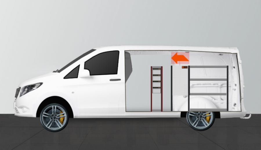 Vous souhaitez maximiser le côté droit de votre Mercedes Vito Long ? Cet aménagement utilitaire vous permet de compléter votre espace de rangement tout en gardant un espace de chargement central maximal, grâce à sa faible profondeur. L’équipement fait 260mm de profondeur. L’aménagement dispose de 4 tiroirs de différentes tailles afin de varier les possibilités de rangement. Les tiroirs s’ouvrent facilement depuis la porte latérale coulissante. Les tiroirs peuvent supporter une charge uniforme de 50 Kg /tiroir. Avec nos nouveaux bacs de rangement pour tiroirs vous avez la possibilité de compléter chaque tiroir et de les organiser à votre guise. L’espace étagère derrière le bloc tiroir se complète facilement avec notre système de bacs de rangement sur rails.