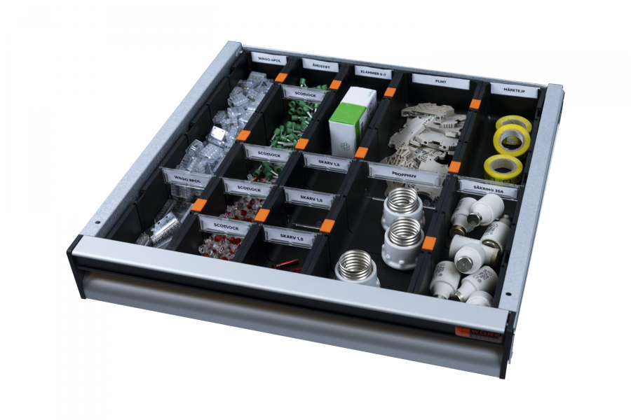 Nos inserts tiroirs sont très pratiques pour ranger les petits articles et accessoires d’outillage. Les inserts peuvent être montés dans tous nos tiroirs. Ils peuvent être complétés par des séparateurs pour créer plusieurs compartiments de différentes tailles. Les inserts et séparateurs peuvent chacun être assortis d’un porte-étiquette pour optimiser le rangement de votre utilitaire. Ils sont disponibles en deux hauteurs de 52,5mm et 105mm, et en quatre largeurs de 70mm, 80mm, 105mm et 160mm. Ils sont fabriqués en polypropylène recyclé.