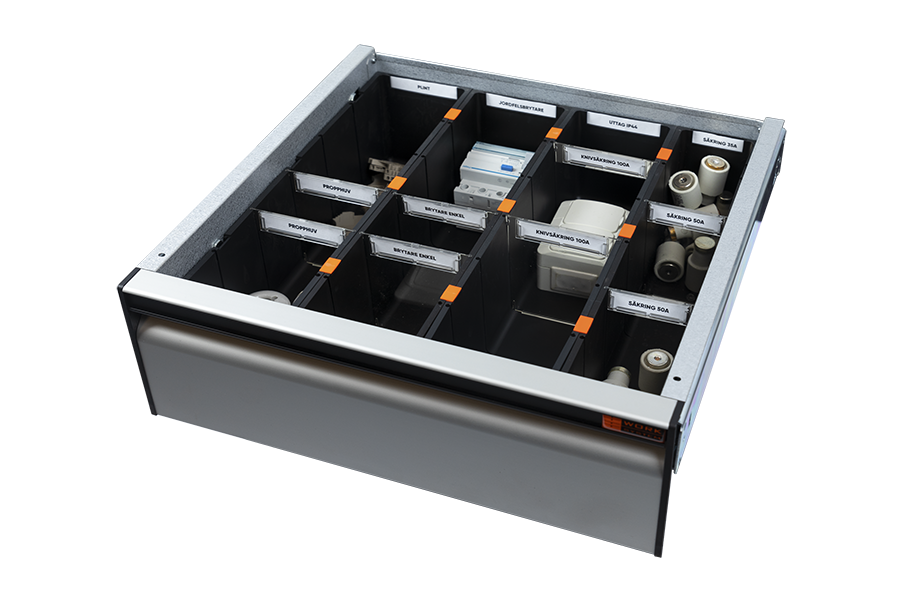 Nos inserts tiroirs sont très pratiques pour ranger les petits articles et accessoires d’outillage. Les inserts peuvent être montés dans tous nos tiroirs. Ils peuvent être complétés par des séparateurs pour créer plusieurs compartiments de différentes tailles. Les inserts et séparateurs peuvent chacun être assortis d’un porte-étiquette pour optimiser le rangement de votre utilitaire. Ils sont disponibles en deux hauteurs de 52,5mm et 105mm, et en quatre largeurs de 70mm, 80mm, 105mm et 160mm. Ils sont fabriqués en polypropylène recyclé.