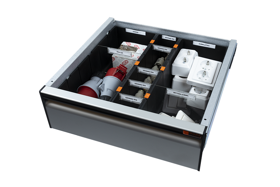 Nos inserts tiroirs sont très pratiques pour ranger les petits articles et accessoires d’outillage. Les inserts peuvent être montés dans tous nos tiroirs. Ils peuvent être complétés par des séparateurs pour créer plusieurs compartiments de différentes tailles. Les inserts et séparateurs peuvent chacun être assortis d’un porte-étiquette pour optimiser le rangement de votre utilitaire. Ils sont disponibles en deux hauteurs de 52,5mm et 105mm, et en quatre largeurs de 70mm, 80mm, 105mm et 160mm. Ils sont fabriqués en polypropylène recyclé.