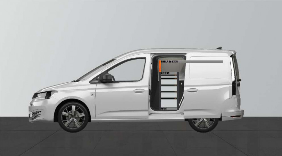 Cet aménagement offre un grand espace de rangement (tiroirs et étagères) pour VW Caddy Cargo & Ford Connect L1 avec porte latérale gauche. (Retour/échange exclus)