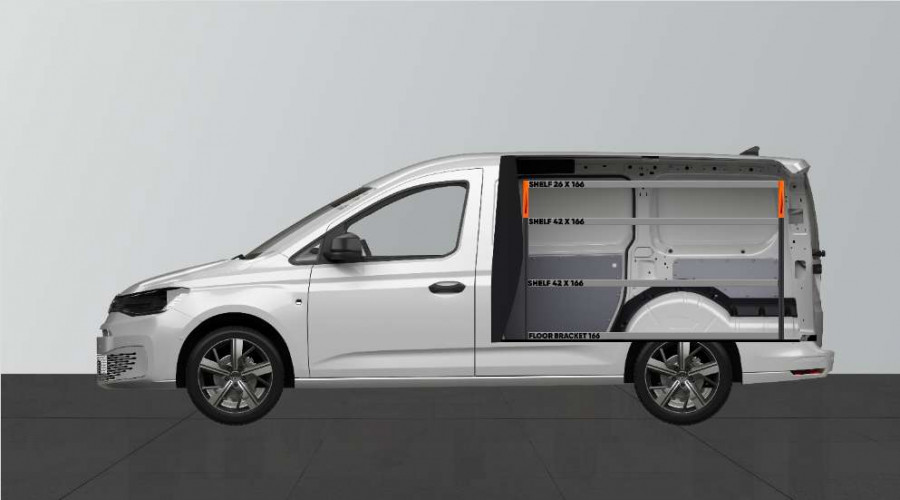 L’aménagement BASE42 vous offre un excellent espace de rangement pour votre VW Caddy Cargo & Ford Connect L2
