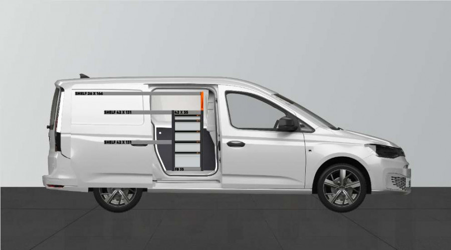 Cet aménagement offre un grand espace de rangement (tiroirs et étagères) pour VW Caddy Cargo & Ford Connect L2 avec porte latérale gauche. (Retour/échange exclus)