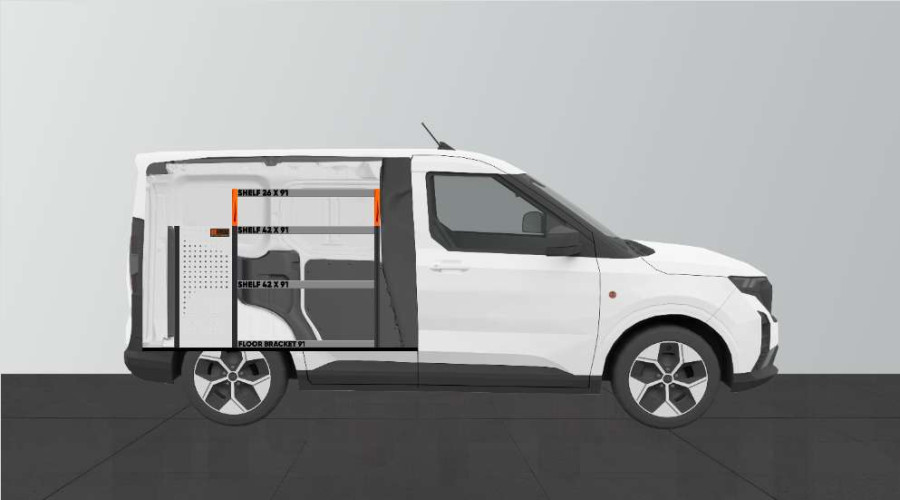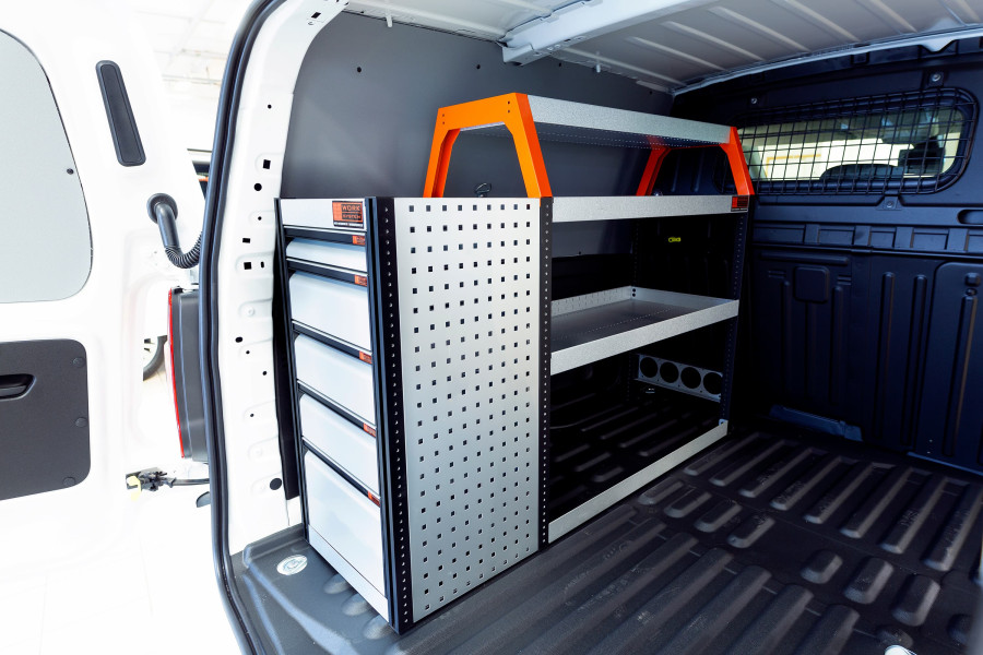 Un aménagement utilitaire parfait pour ceux qui souhaitent avoir un accès rapide et facile à de nombreux tiroirs. Cet aménagement utilitaire pour Ford Courier L1offre également d’excellentes possibilités de rangement dans les étagères, non seulement pour vos mallettes à outils et vos outils électriques mais aussi pour vos petits objets. Les étagères peuvent être complétées par des séparateurs et nos bacs modulaires.