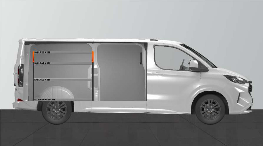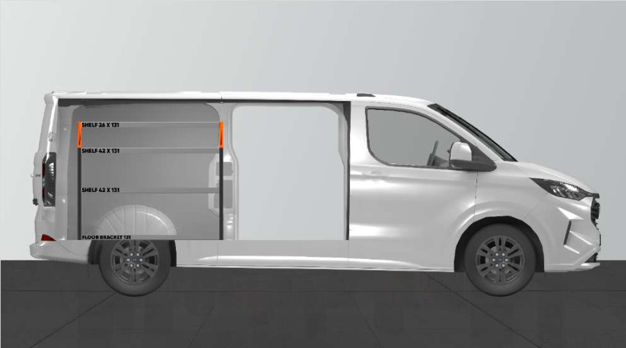 L’aménagement SHORT42 vous offre un excellent espace de rangement pour votre Ford Custom & VW Transporter L2.