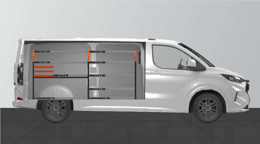 Un aménagement utilitaire idéal pour ceux qui recherchent une solution de rangement polyvalente pour mallettes portatives et machines. Cette étagère comprend trois supports pour mallettes spécifiquement conçu pour nos mallettes de taille moyenne Raaco Carrylight. Nous proposons les mallettes en option. Aménagement utilitaire parfaitement adapté à votre Ford Custom & VW Transporter L2.
