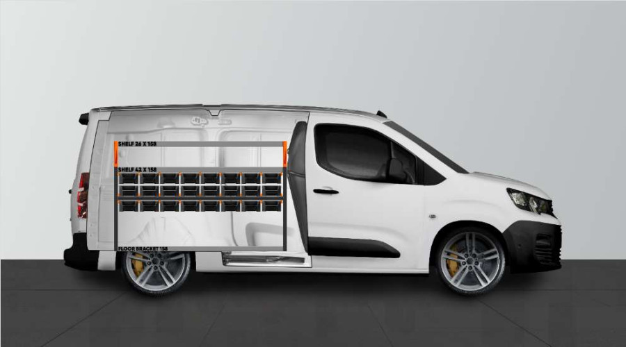 Grâce à ses tiroirs et étagères, cet aménagement utilitaire est très apprécié des conducteurs de Berlingo, Combo, Proace City & Partner L2.