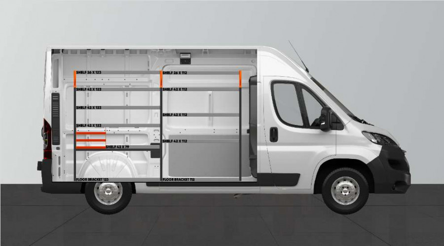 Un aménagement utilitaire idéal pour ceux qui recherchent une solution de rangement polyvalente pour mallettes portatives et machines. Cette étagère comprend trois supports pour mallettes spécifiquement conçu pour nos mallettes de taille moyenne Raaco Carrylight. Nous proposons les mallettes en option. Aménagement utilitaire parfaitement adapté à votre Proace Max, Peugeot Boxer, Fiat Ducato, Citroen Jumper 2010- & Opel Movano 2021- L2.
