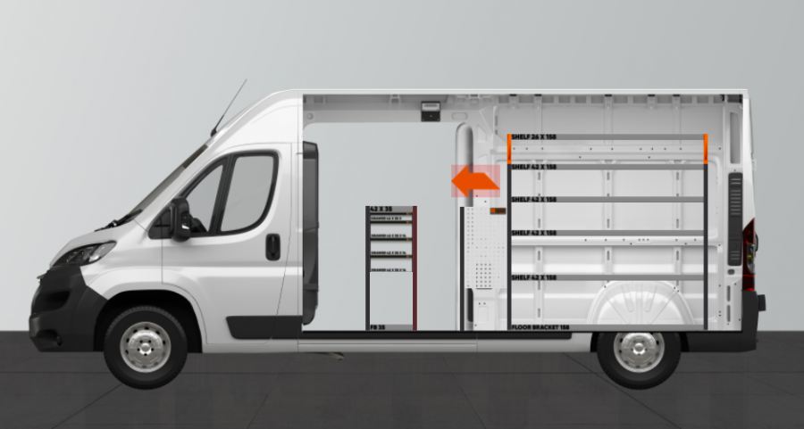 L’aménagement SHORT42 vous offre un excellent espace de rangement pour votre Master, Movano & NV400.
