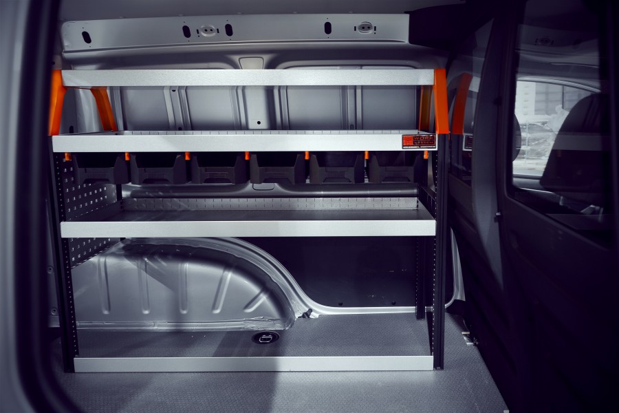 Un aménagement utilitaire conçu pour ceux décidés dès le départ à garder leur VW Caddy Standard bien organisé et bien rangé. Il est équipé de six de nos nouveaux bacs modulaires intelligents que vous pouvez extraire facilement le long de rails prévus à cet effet. Vous pouvez également ajuster et déplacer ces bacs à votre gré le long des rayonnages. Vous disposez ainsi d’excellentes possibilités de rangement pour vos mallettes d’outils, votre outillage électroportatif et votre équipement, car les étagères ont une profondeur de 420 mm.