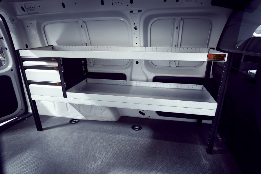 Une solution économique pour ceux voulant disposer de tiroirs sur rails à roulement à billes ainsi que de nombreuses étagères de rangement pour VW Caddy Maxi. Cet aménagement, aux rayonnages de 420 mm de profondeur, permet d’accueillir parfaitement la plupart des mallettes d’outils actuellement disponibles sur le marché. Les tiroirs peuvent être complétés avec nos nouveaux organiseurs. L’idéal pour tenir vos petites pièces en ordre.