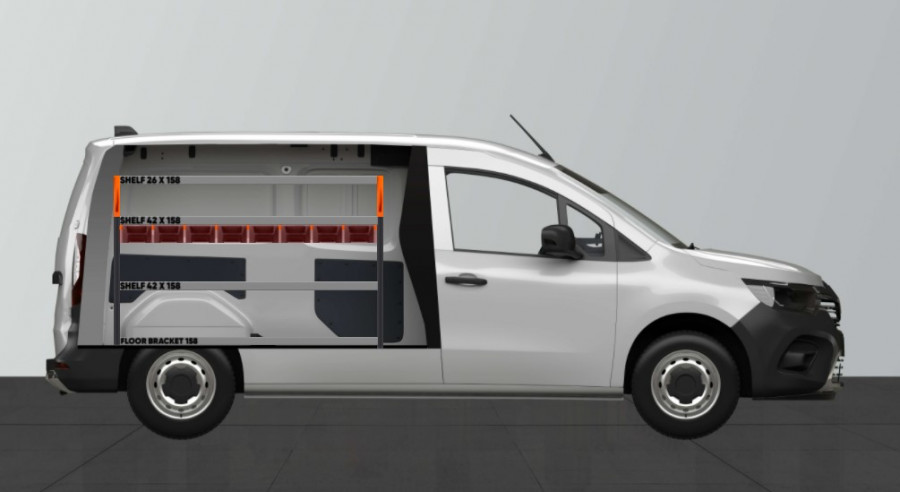 Un aménagement utilitaire conçu pour ceux décidés dès le départ à garder leurs Kangoo, Citan, Townstar L2H1 bien organisés et bien rangés. Il est équipé de huit de nos nouveaux bacs modulaires intelligents que vous pouvez extraire facilement le long de rails prévus à cet effet. Vous pouvez également ajuster et déplacer ces bacs à votre gré le long des rayonnages. Vous disposez ainsi d’excellentes possibilités de rangement pour vos mallettes d’outils, votre outillage électroportatif et votre équipement, car les étagères ont une profondeur de 420 mm.