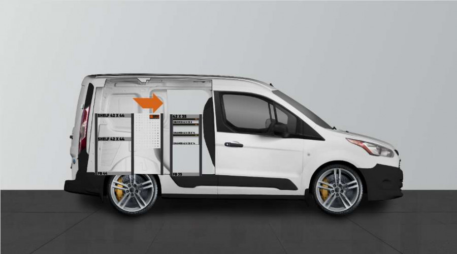 Grâce à ses tiroirs et étagères, cet aménagement utilitaire est très apprécié des conducteurs de Ford Connect L2