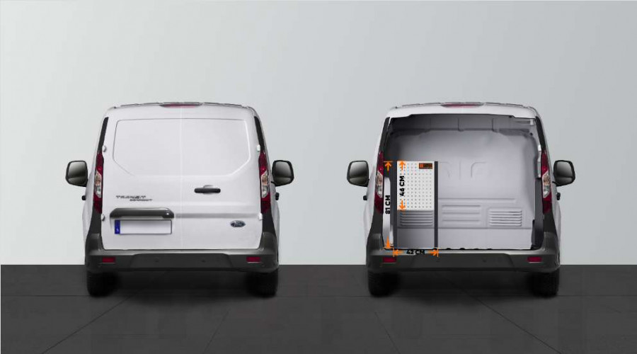 Aménagement utilitaire avec tiroirs facilement accessibles par la porte latérale de votre Ford Connect L1.