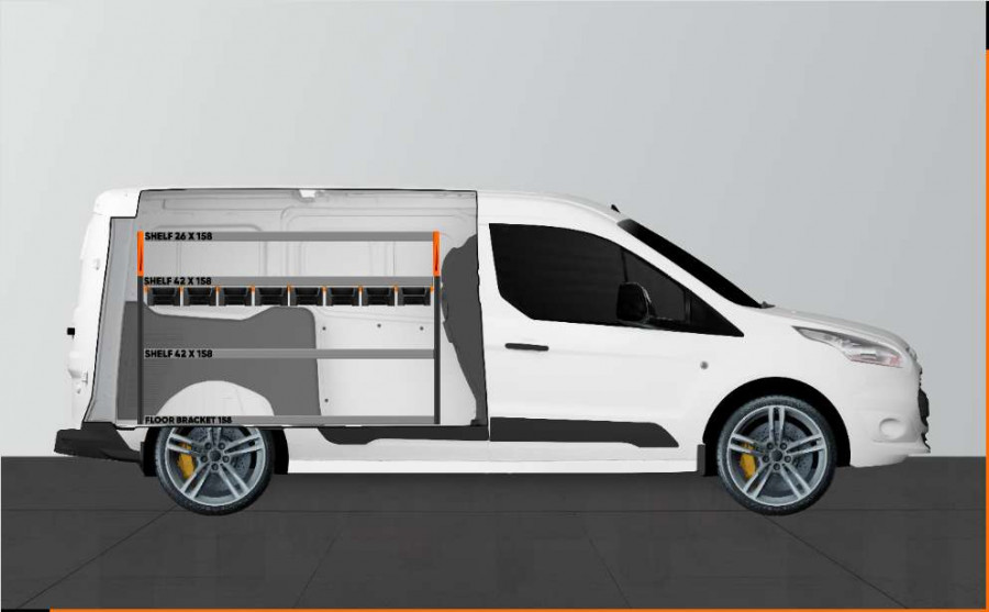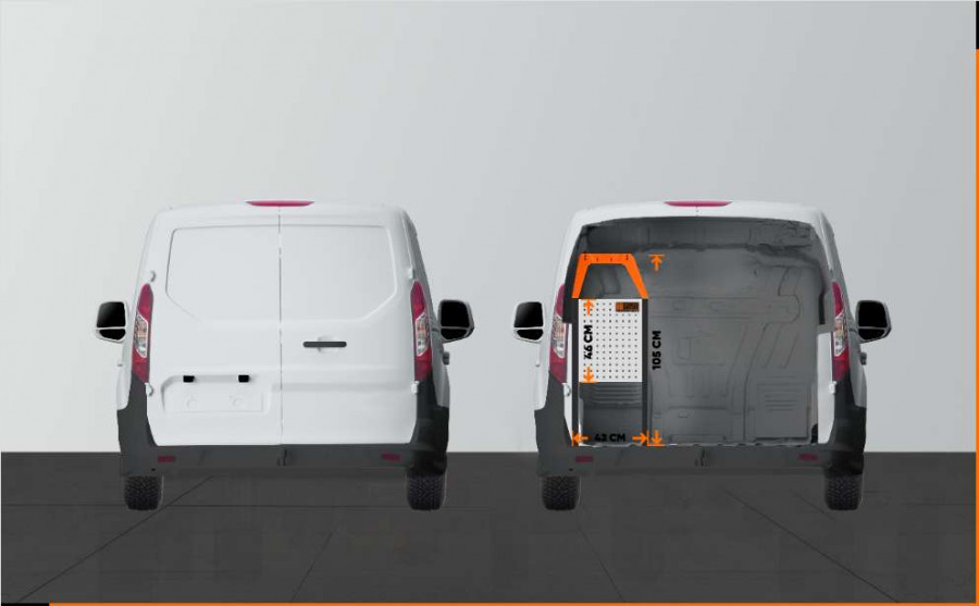 Un aménagement utilitaire conçu pour ceux qui souhaitent que leur Ford Connect L2 soit bien organisé et bien rangé. L’aménagement est équipé de nos bacs modulaires extensibles sur rails. Avec les étagères de 420 mm de profondeur, vous disposez d’excellentes possibilités de rangement pour vos mallettes à outils, vos outils électriques et votre matériel.