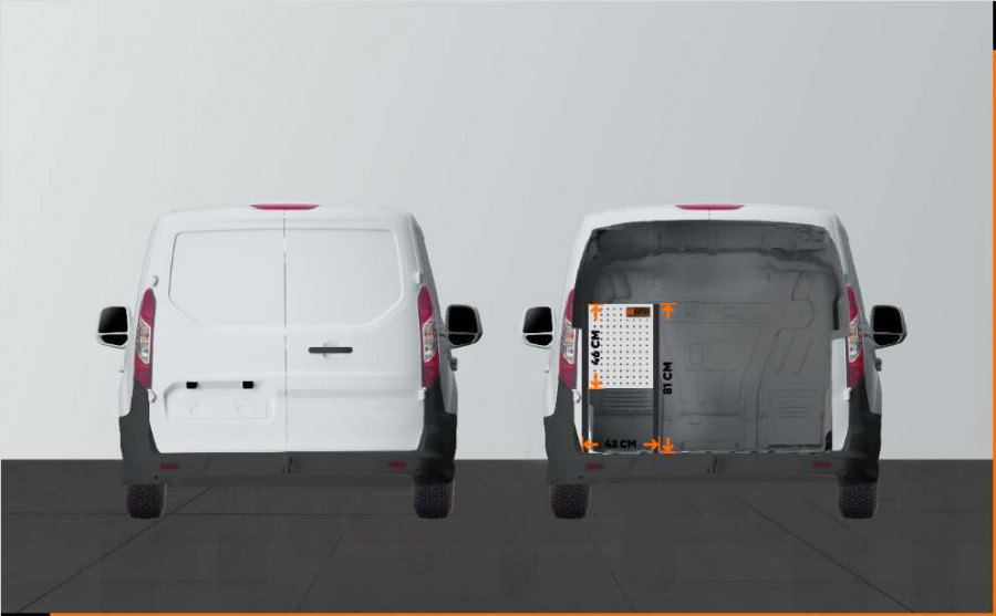 Une solution économique pour ceux qui recherchent un aménagement combinant tiroirs avec glissières à billes et étagères pour leur Ford Connect L2. Les étagères de 420 mm de profondeur permettent d’accueillir parfaitement la plupart des mallettes à outils actuellement disponibles sur le marché. Les tiroirs peuvent être complétés par nos inserts à tiroir qui permettent de bien ranger les petits objets.