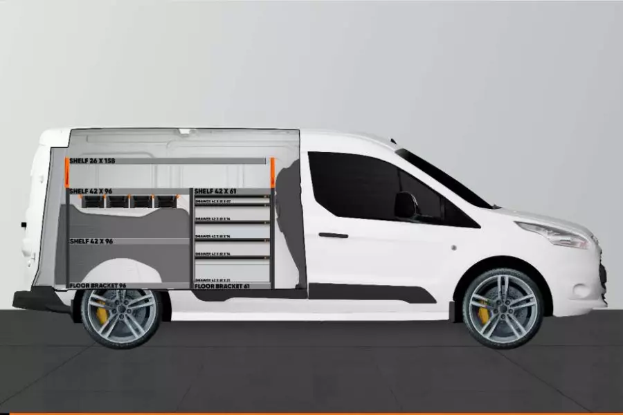 Grâce à ses tiroirs et étagères, cet aménagement utilitaire est très apprécié des conducteurs de Ford Connect L2