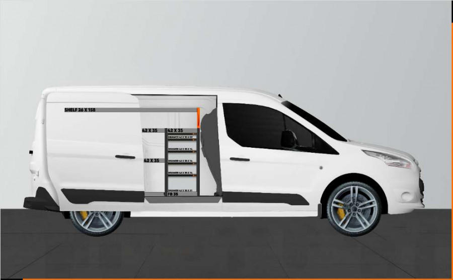 Cet aménagement offre un grand espace de rangement (tiroirs et étagères) pour Ford Connect L2 avec porte latérale gauche. (Retour/échange exclus)