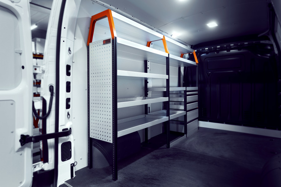 Voici l’un de nos systèmes les plus appréciés des conducteurs de Iveco Daily L3H2. Le chiffre 5 correspond au nombre de tiroirs. Cet aménagement offre également d’excellentes possibilités de rangement dans les étagères, non seulement pour vos mallettes à outils et vos outils électriques mais aussi pour vos petits objets. Vous disposez d’un caisson à tiroirs de tailles différentes pour que chaque article trouve sa place. Les tiroirs avec roulement à billes peuvent être complétés par nos inserts à tiroir pour structurer l’espace de façon optimale. Le panneau perforé peut être équipé de nos accessoires Smartbox, crochets, etc. afin d’optimiser votre espace de rangement.