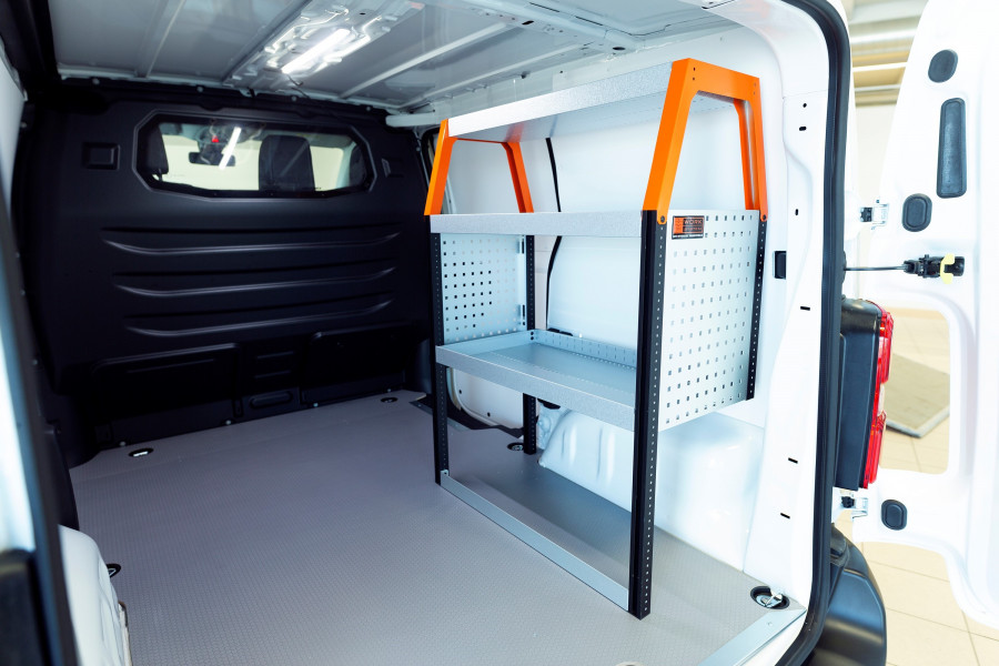 Un aménagement utilitaire un peu plus court pour votre Maxus e-Deliver 3 L1. Avec une profondeur de 420 mm l’aménagement constitue une excellente alternative de rangement pour les mallettes à outils et les outils électriques ainsi que pour les petites pièces. Les étagères de 420 mm de profondeur permettent d’accueillir parfaitement la plupart des mallettes à outils actuellement disponibles sur le marché. L’étagère du haut de 262,5 mm est souvent combinée à nos bacs modulaires pour y ranger les petits objets. L’aménagement est adapté aux véhicules avec ou sans porte latérale et le panneau perforé peut être équipé de nos accessoires Smartbox, crochets, etc.