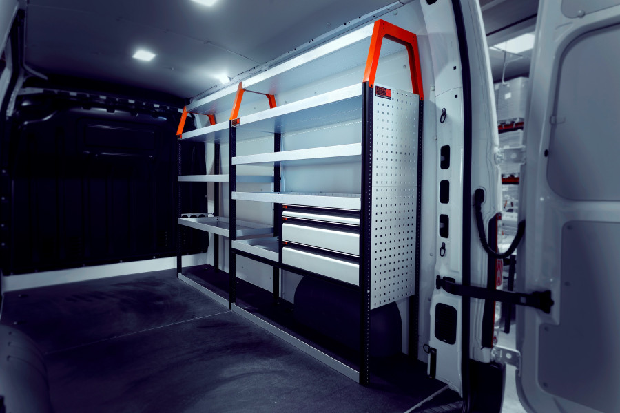 Grâce à ses tiroirs et étagères, cet aménagement utilitaire est très apprécié des conducteurs de Maxus e-Deliver 9 L2.