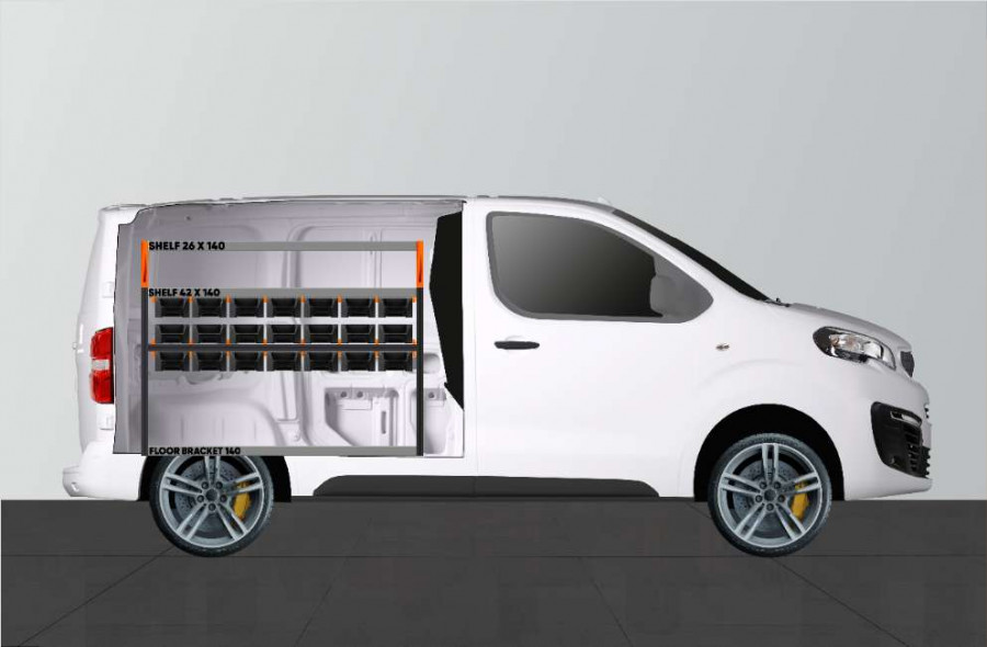 RACK est un aménagement utilitaire populaire pour votre Peugeot Expert, Citroen Jumpy, Opel Vivaro, Fiat Scudo & Toyota ProAce L1. Il est parfait pour ceux qui recherchent une solution de rangement optimale pour leur petit matériel tel que vis, raccords, boulons, forets etc. Aménagement optimisé avec nos bacs modulaires extensibles sur rails facilement accessibles. L’avant des bacs peut être assorti d’une fenêtre transparente. A l’intérieur du bac des séparateurs peuvent être placés tous les 60 mm.