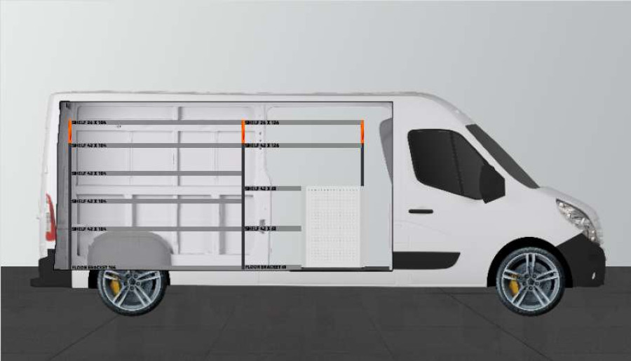 Cet aménagement offre un grand espace de rangement (tiroirs et étagères) pour Movano, Master & NV400 L3 avec porte latérale gauche. (Retour/échange exclus)