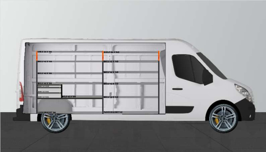 Voici l’un de nos aménagements utilitaires les plus appréciés des conducteurs de Opel Movano, Renault Master & Nissan NV400 L3. L’aménagement LS3 est utilisé tant par les professionnels du bâtiment que par les techniciens SAV, les électriciens, les plombiers, les chauffagistes et les menuisiers. L’aménagement offre d’excellentes possibilités de rangement pour les mallettes à outils, les machines, les consommables ainsi que pour les petits objets. Les tiroirs peuvent être complétés par nos inserts à tiroir et le panneau perforé latéral peut être équipé de nos accessoires Smartbox, crochets, etc.