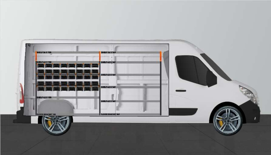 RACK est un aménagement utilitaire populaire pour votre Opel Movano, Renault Master & Nissan NV400. Il est parfait pour ceux qui recherchent une solution de rangement optimale pour leur petit matériel tel que vis, raccords, boulons, forets etc. Aménagement optimisé avec 80 bacs modulaires extensibles sur rails facilement accessibles. L’avant des bacs peut être assorti d’une fenêtre transparente. A l’intérieur du bac des séparateurs peuvent être placés tous les 60 mm.