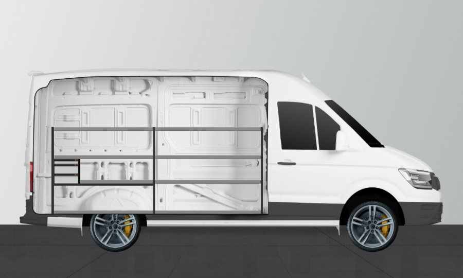 Une solution simplifiée parmi nos systèmes d’aménagement de véhicules de service qui rencontre un franc succès auprès des conducteurs d’IVECO DAILY L3 H2, grâce à ses tiroirs et étagères.