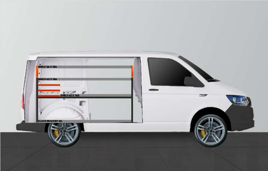 Aménagement pour ceux qui transportent des mallettes d’outils dans la VW Transporter L1.