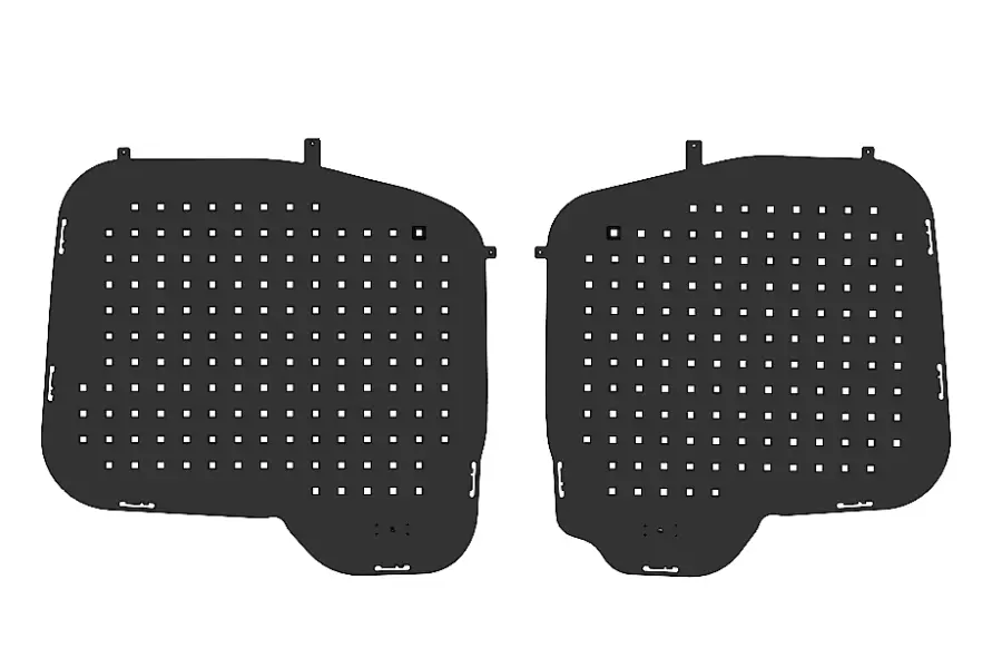 Seulement jusqu'à l'année modèle 2020! Ces panneaux vous permettent d'utiliser les portes arrière de votre Volkswagen Caddy comme rangement d'appoint en complétant avec des smartbox ou des crochets. Cela vous permet aussi de protéger l'accès à votre utilitaire contre les effractions. (Retour/échange exclus)