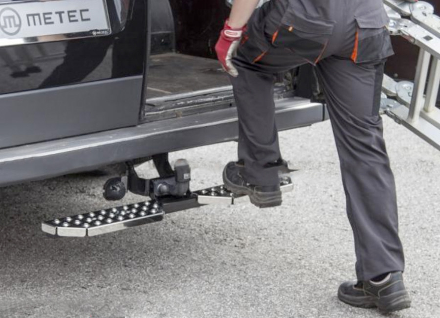 Accessoire très pratique se fixant dans les boulons d’origine de l’attache-remorque et permettant de monter facilement dans le véhicule. Une solution idéale pour p. ex. les artisans et livreurs.