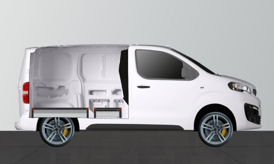 Le double plancher convient au Peugeot Expert L1, à l’Opel Vivaro L1 2020-, au Citroën Jumpy L1, au Fiat Scudo et au Toyota ProAce Compact.