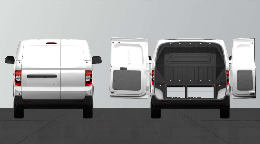 Les tiroirs arrière ont des largeurs de chargement de 570 mm et de 395 mm, et ceux de la porte latérale, de 570 mm.