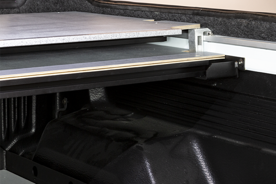 Ce double plancher est placé à la hauteur des bords des ridelles du pick-up. Il offre ainsi une surface supplémentaire pour ranger des outils, des matériaux ou autres objets.